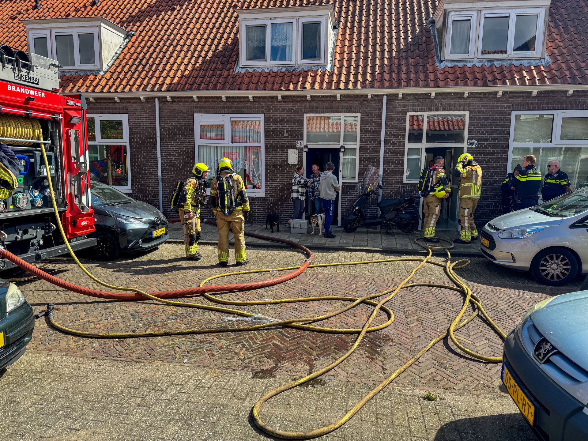 De autotankspuit van Leiden Zuid bluste vanaf de voorkant van de woning, het andere corps vanaf de achterkant. Het vuur was snel onder controle. De oorzaak van de brand wordt nog onderzocht.