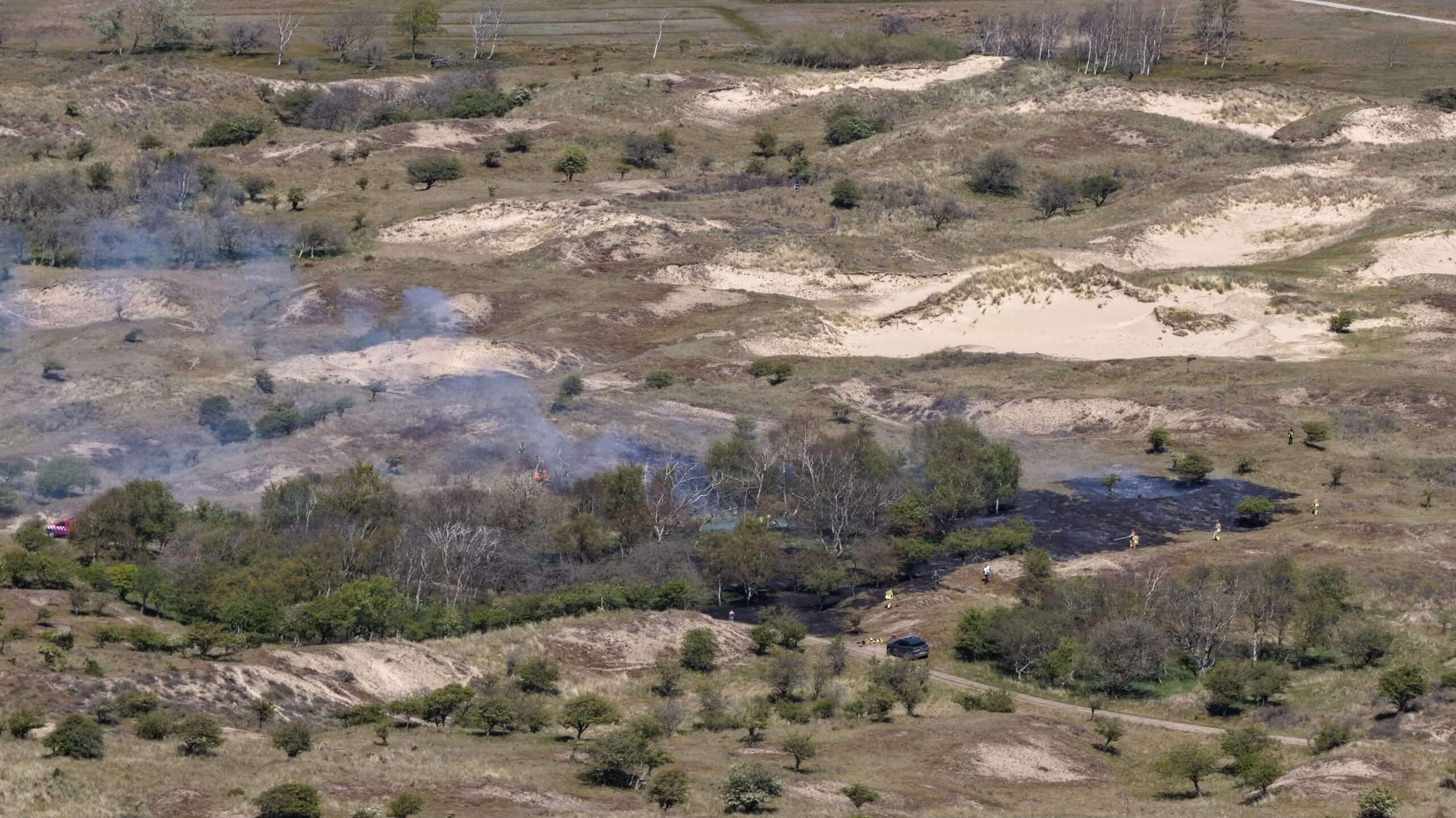 Een deel van het gebied dat bekend staat als de Waterleidingduinen staat in brand. Het zou om 800 vierkante meter gaan. Brandweerlieden gebruiken ‘vuurzwepen’ om het vuur te doven. Een woordvoerder meldt dat het lastig is om water op die plek te krijgen.